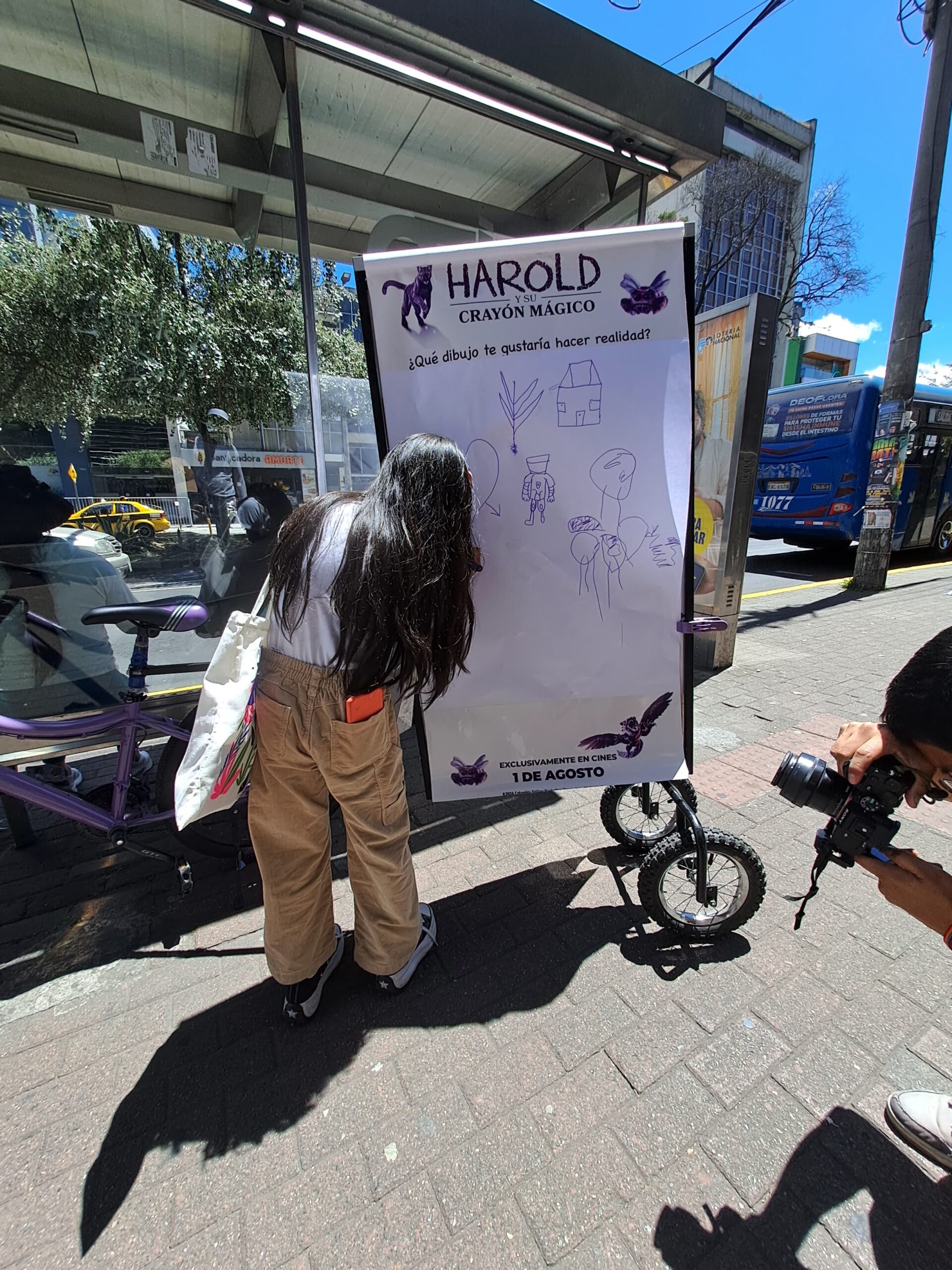 En la ciudad de Quito y Guayaquil el servicio de publicidad móvil con nuestra línea de bicicletas publicitarias se movió con un diseño exclusivo para el lanzamiento de la película «Harold y el crayón mágico» en donde decenas y decenas de personas pintaron nuestras unidades con uno de los sueños que ellos esperaban hacer realidad!.